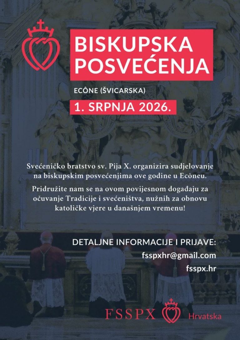 Uskrsna poruka 2026. poglavara distrikta, p. Johannesa Regelea Poruka poglavara distrikta biskupijskim i redovničkim svećenicima za Veliki četvrtak 2026. Otplata kuće za budući priorat Biskup Schneider: Biskupska posvećenja FSSPX-a ni na koji način neće biti raskolnička Christus Rex br. 42: Najava biskupskih posvećenja 2026. Tradicija nije (samo) estetika